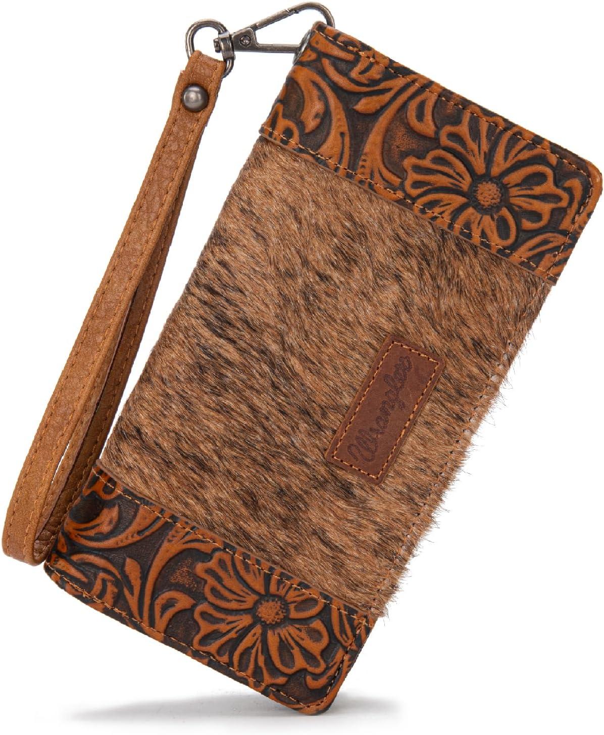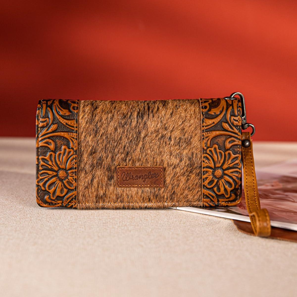Wrangler Wristlet Wallets Western Wallet for Women Floral Tooled Womens Wallet Boot Stitch Purses(C-horsehair-brown)