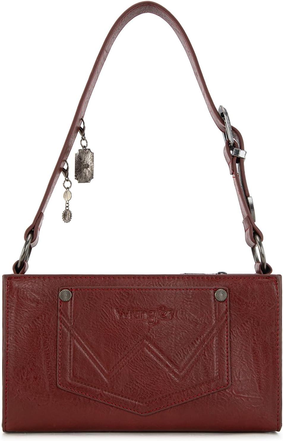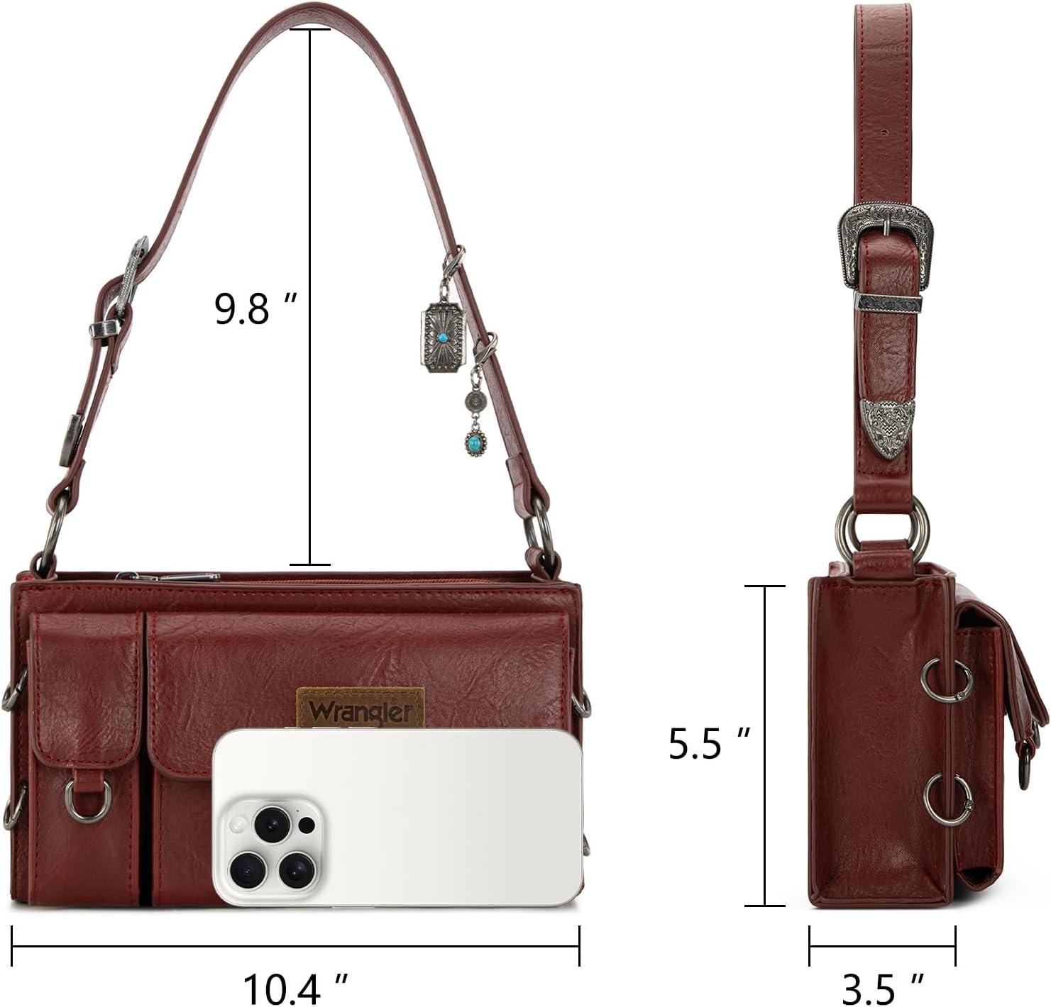 Wrangler Y2K Purse Small Shoulder Bag for Women with Western Detachable Charms & Multiple Pockets(Burgundy)
