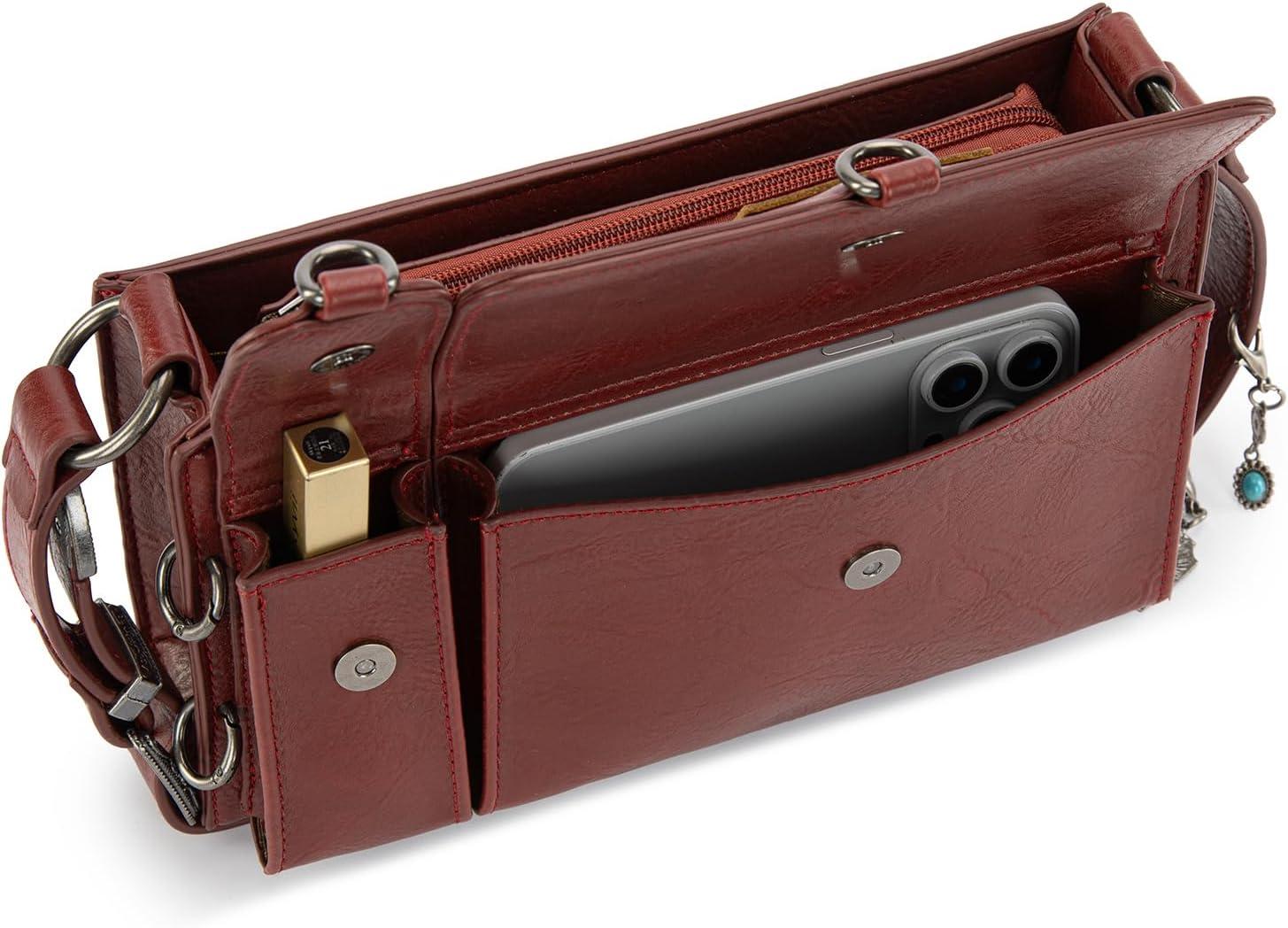 imageWrangler Y2K Purse Small Shoulder Bag for Women with Western Detachable Charms ampamp Multiple PocketsBurgundy