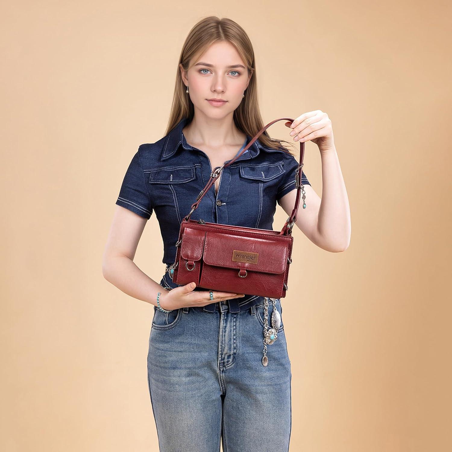 Score big savings on Wrangler Y2K Purse Small Shoulder Bag for Women with Western Detachable Charms & Multiple Pockets(Burgundy) during our back-to-school sale. Limited quantities available.