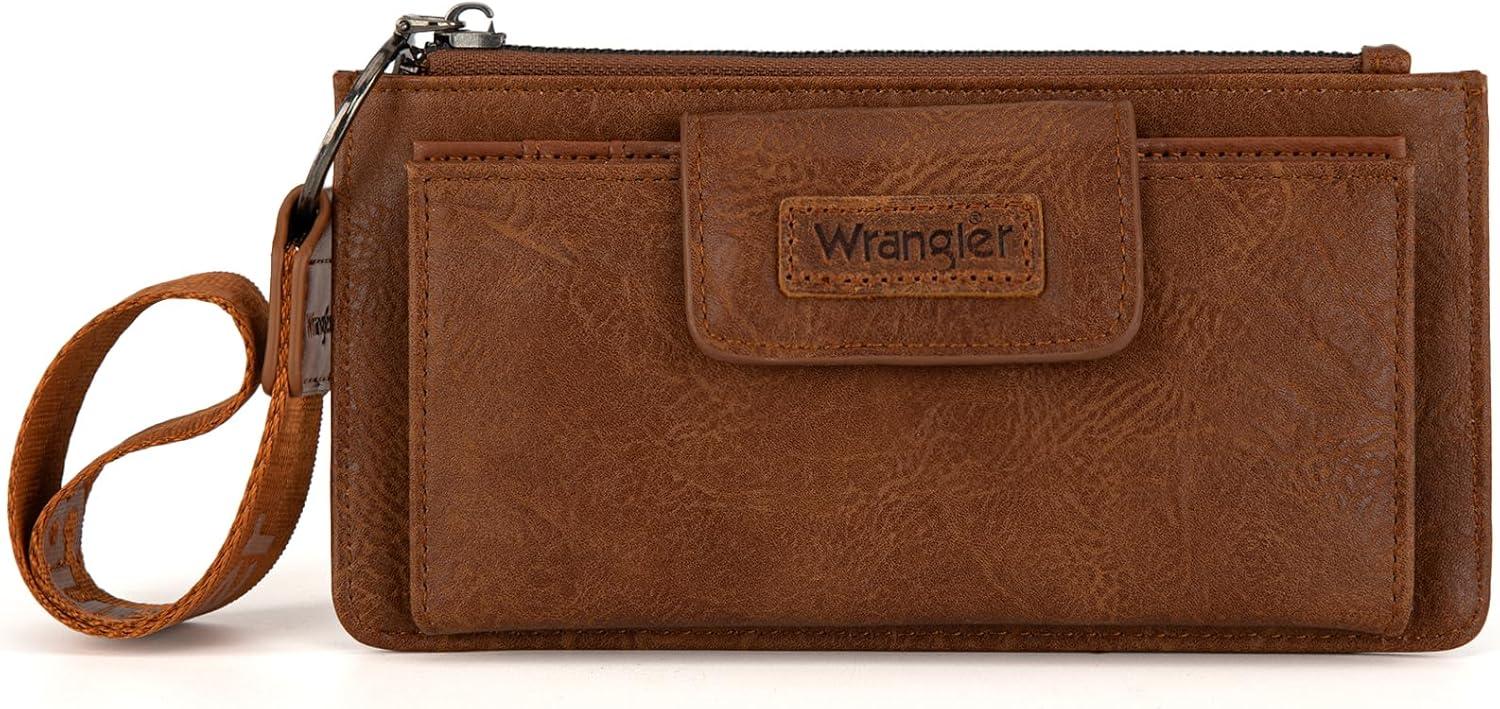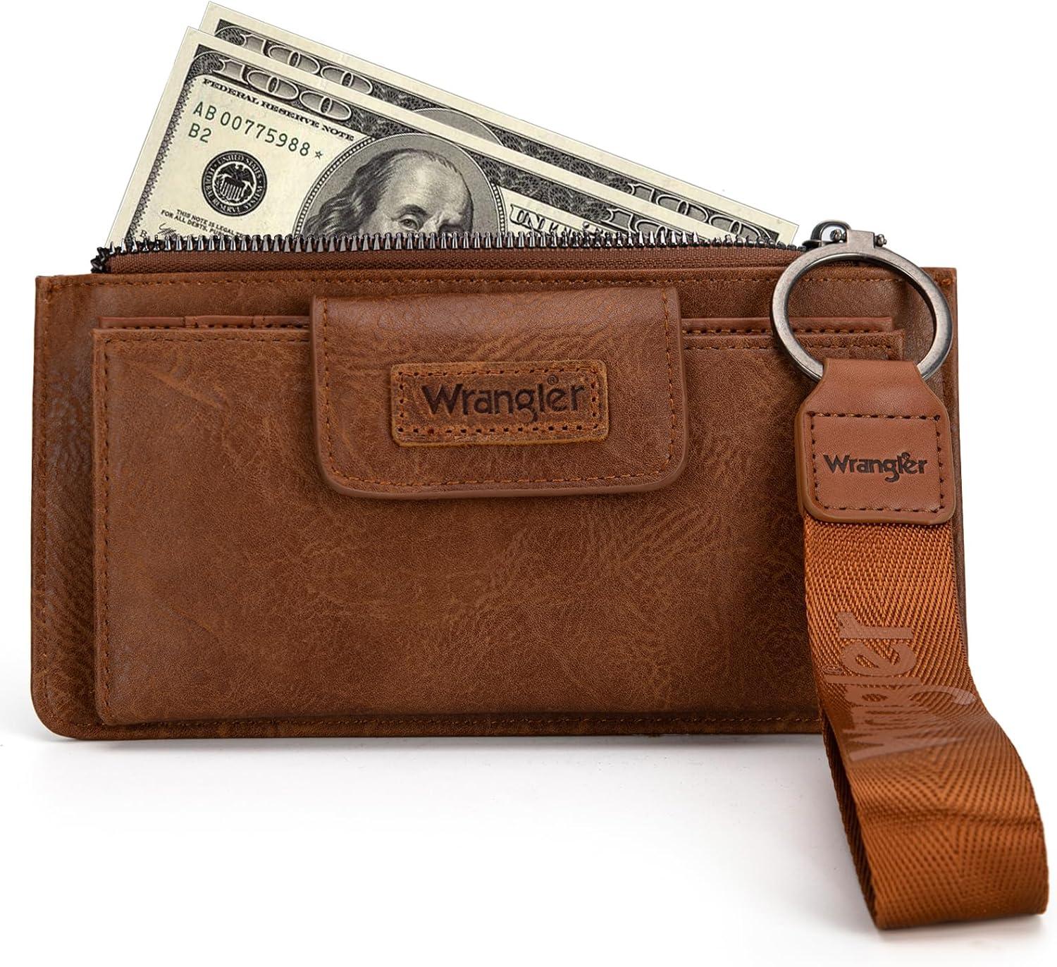 imageX Wrangler Minimalist Wallet Women Card Cases ampamp Money Organizers Wristlet with Wallet Large Clutch with Coin Purse Smooth Zipper and Rfid LiningBrown