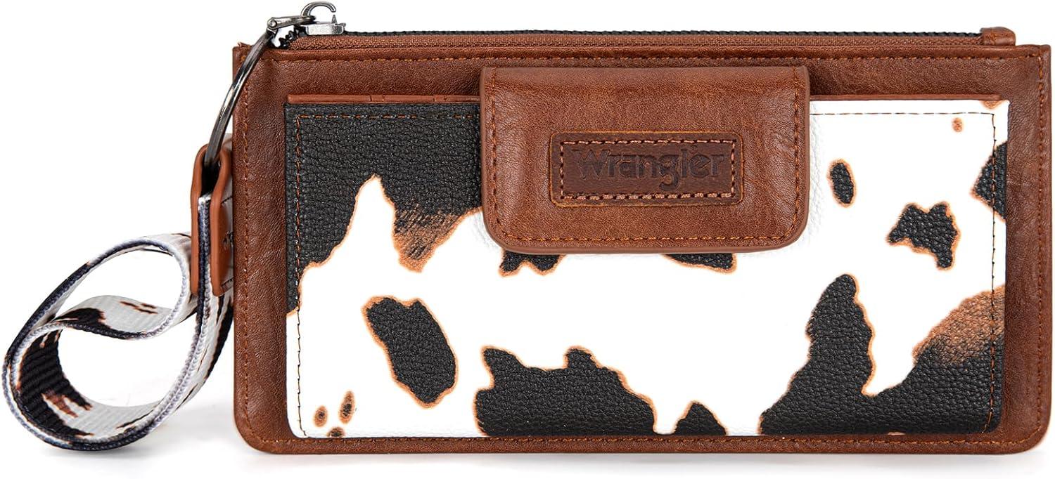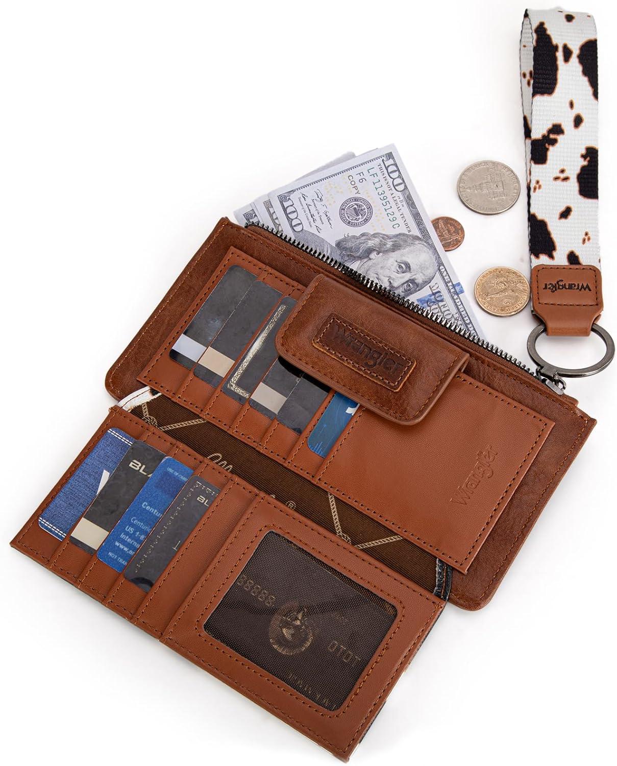 imageX Wrangler Minimalist Wallet Women Card Cases ampamp Money Organizers Wristlet with Wallet Large Clutch with Coin Purse Smooth Zipper and Rfid LiningCow Brown