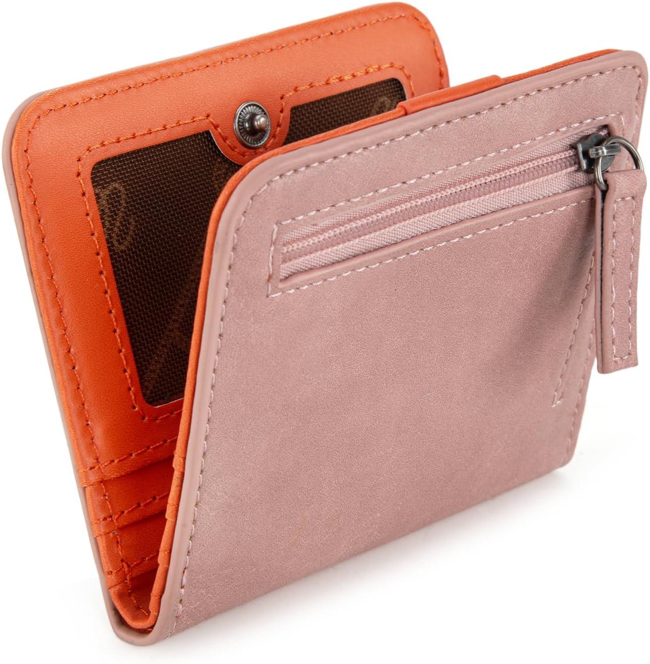 imageX Wrangler Small Leopard Print Wallets for Women Slim Thin Wallet Card Cases Money Organizer Thin Mini Pocket Wallet with Rfid Lining and A Coin PursePink