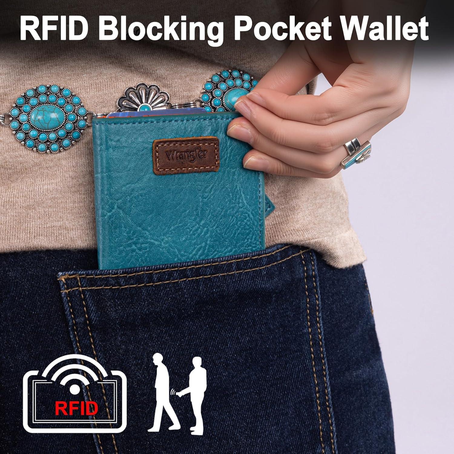imageX Wrangler Small Leopard Print Wallets for Women Slim Thin Wallet Card Cases Money Organizer Thin Mini Pocket Wallet with Rfid Lining and A Coin PurseTurquoise
