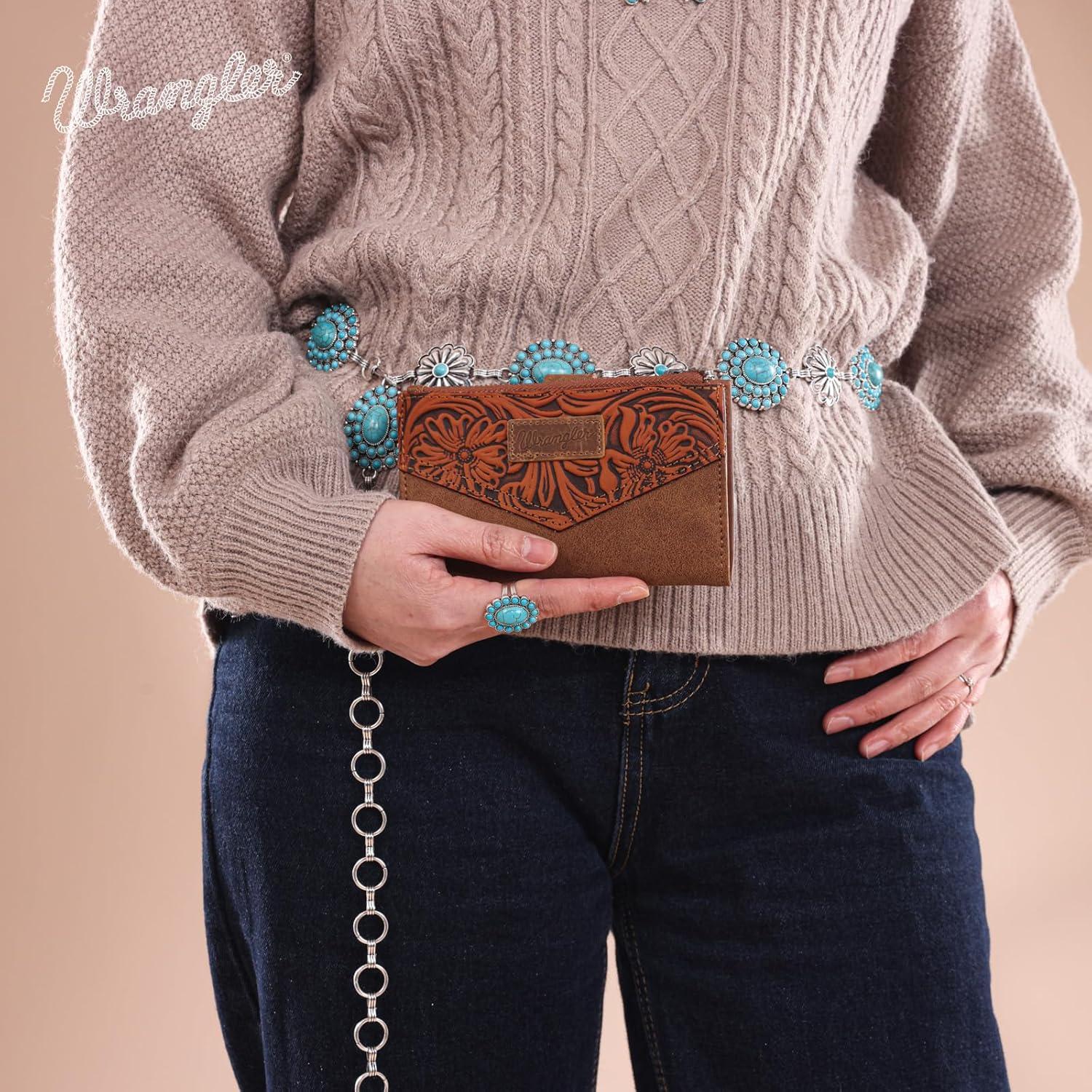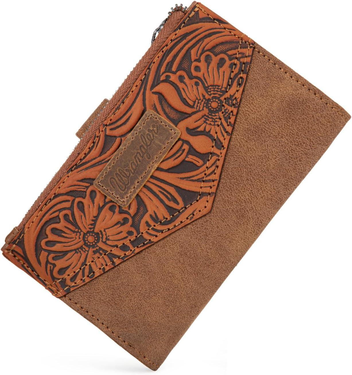 × Wrangler Small Wallet for Women Designer Bifold Wallet Embossed Women’S Wallets, Card Cases & Money Organizers, Black(Embossed-Brown)