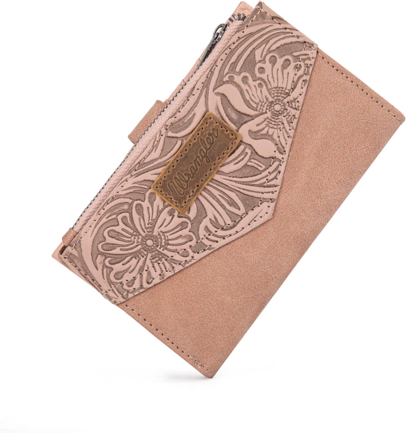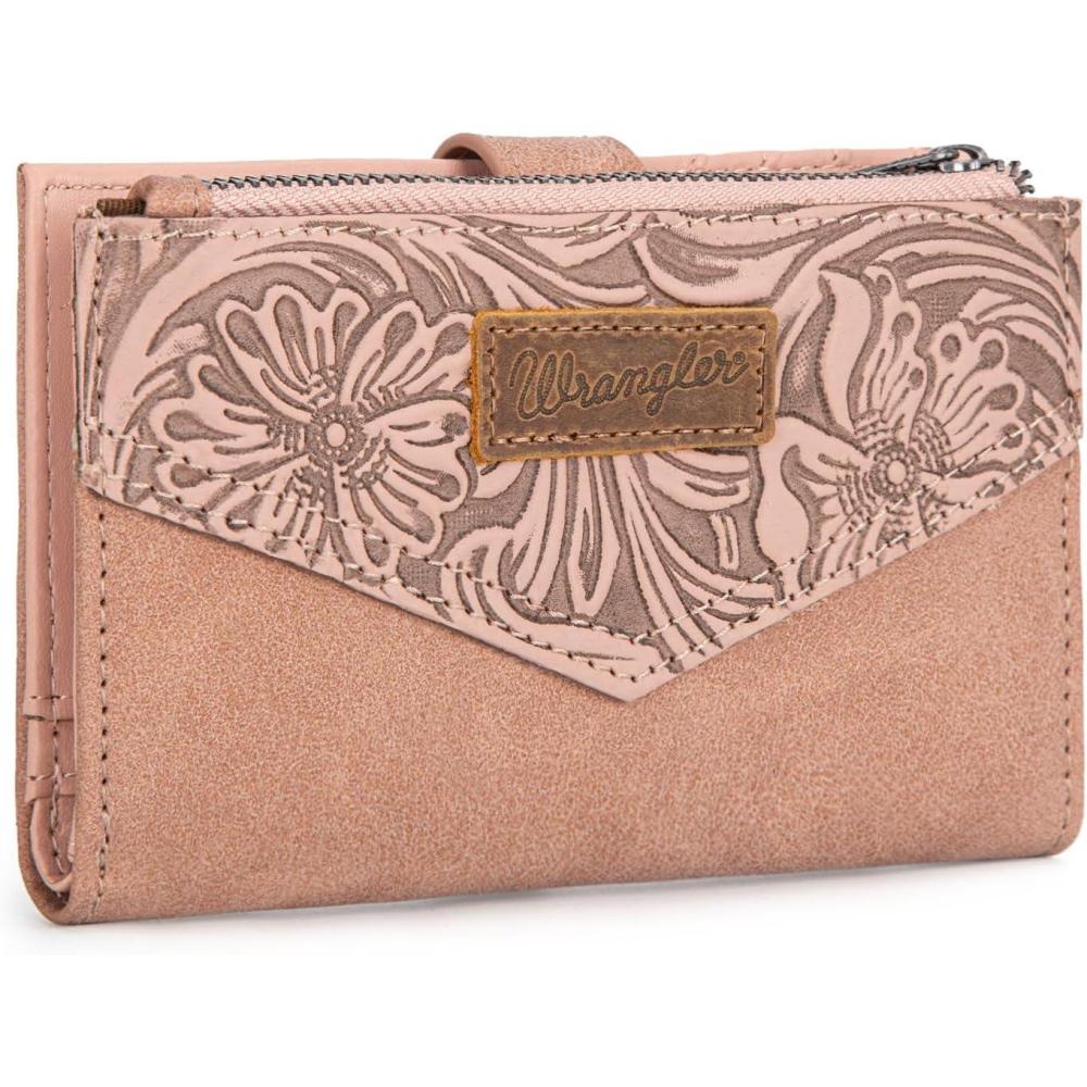 × Wrangler Small Wallet for Women Designer Bifold Wallet Embossed Women’S Wallets, Card Cases & Money Organizers, Black(Embossed-Pink)