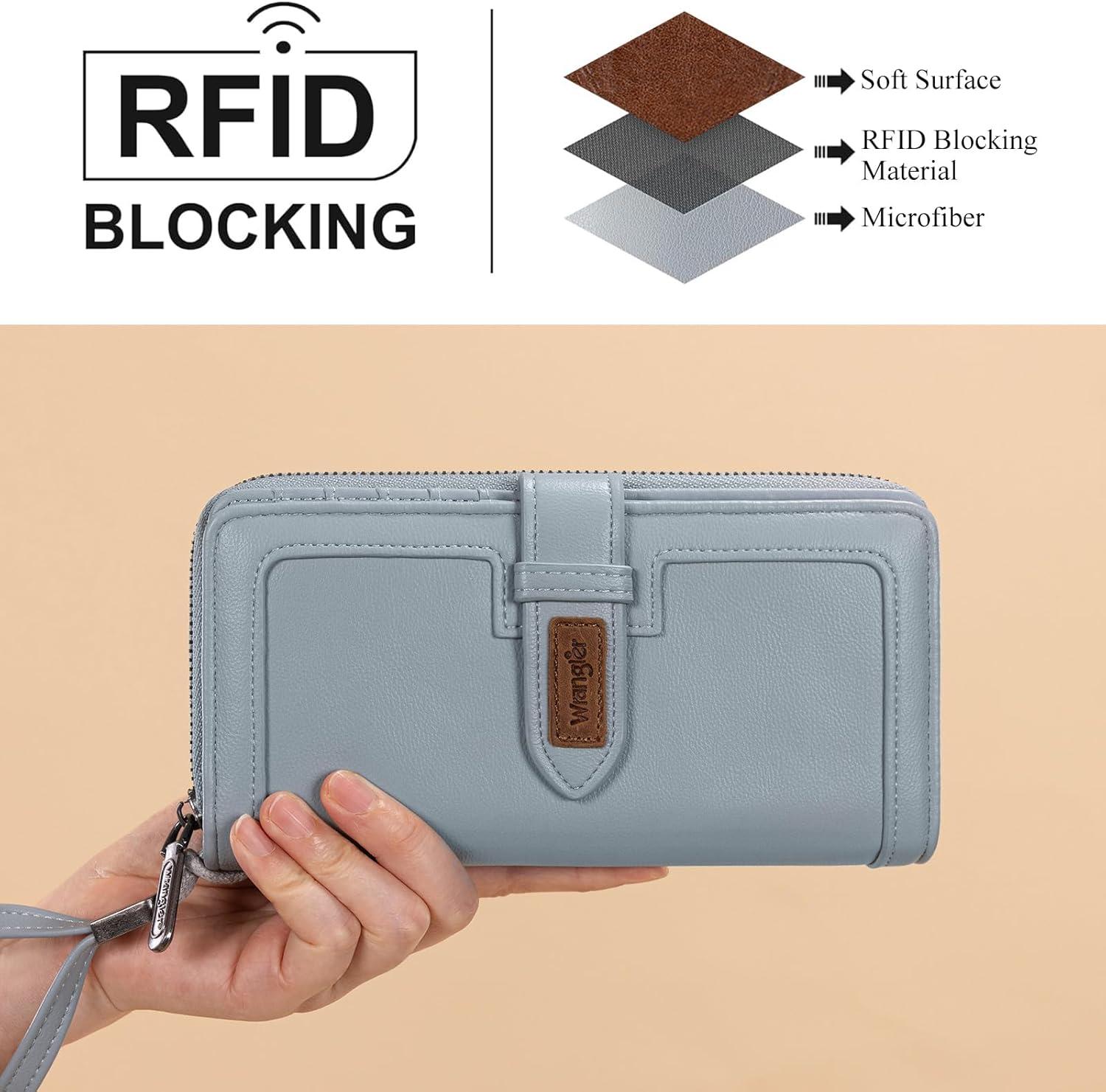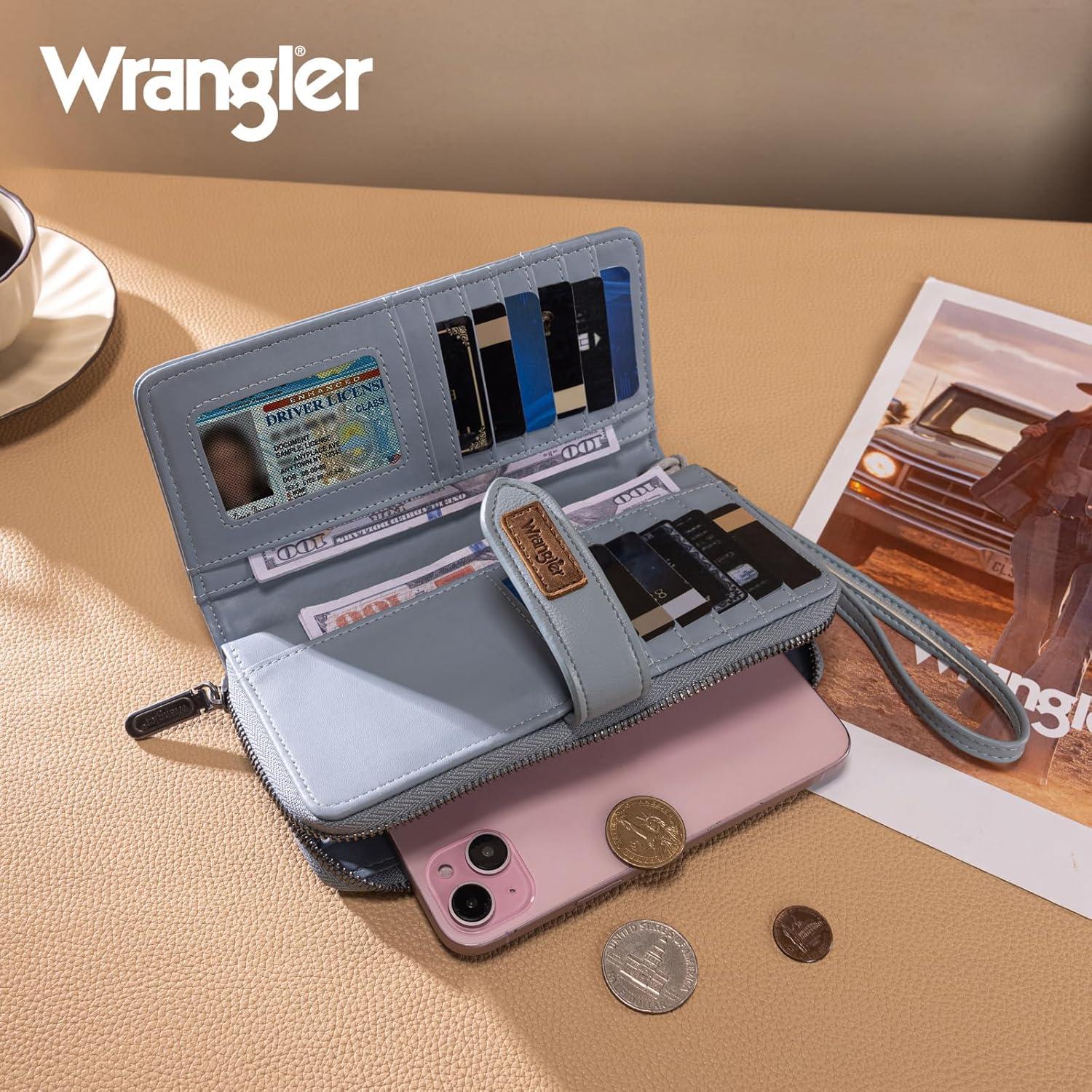 imageX Wrangler Womens Wallets Bifold Wristlet Wallets for Women Large Capacity Credit Card Cash Wallet with ID WindowJeans Blue