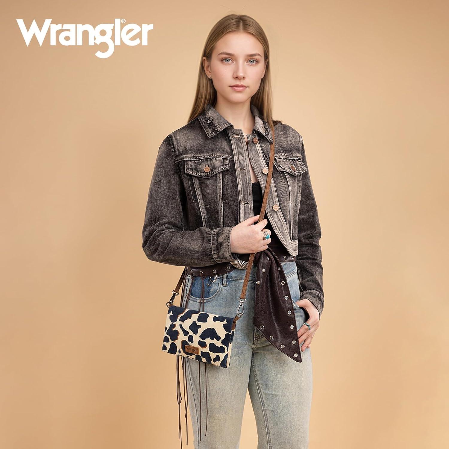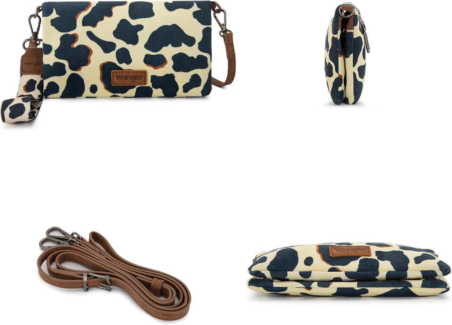X Wrangler Wristlet Wallets for Women Bifold Cow Print Wallets Large Capacity Western Wallet with Crossbody Strap(Brown)