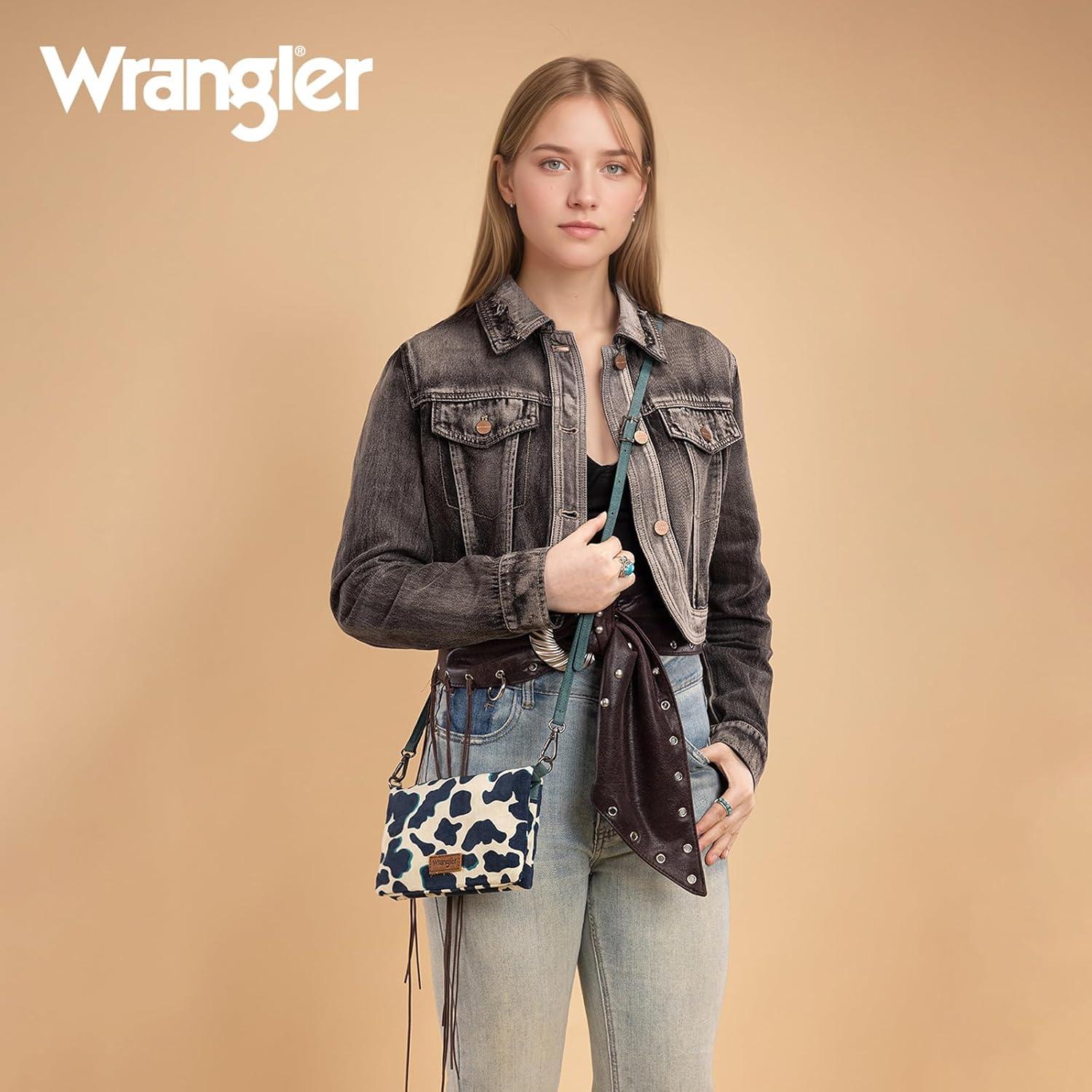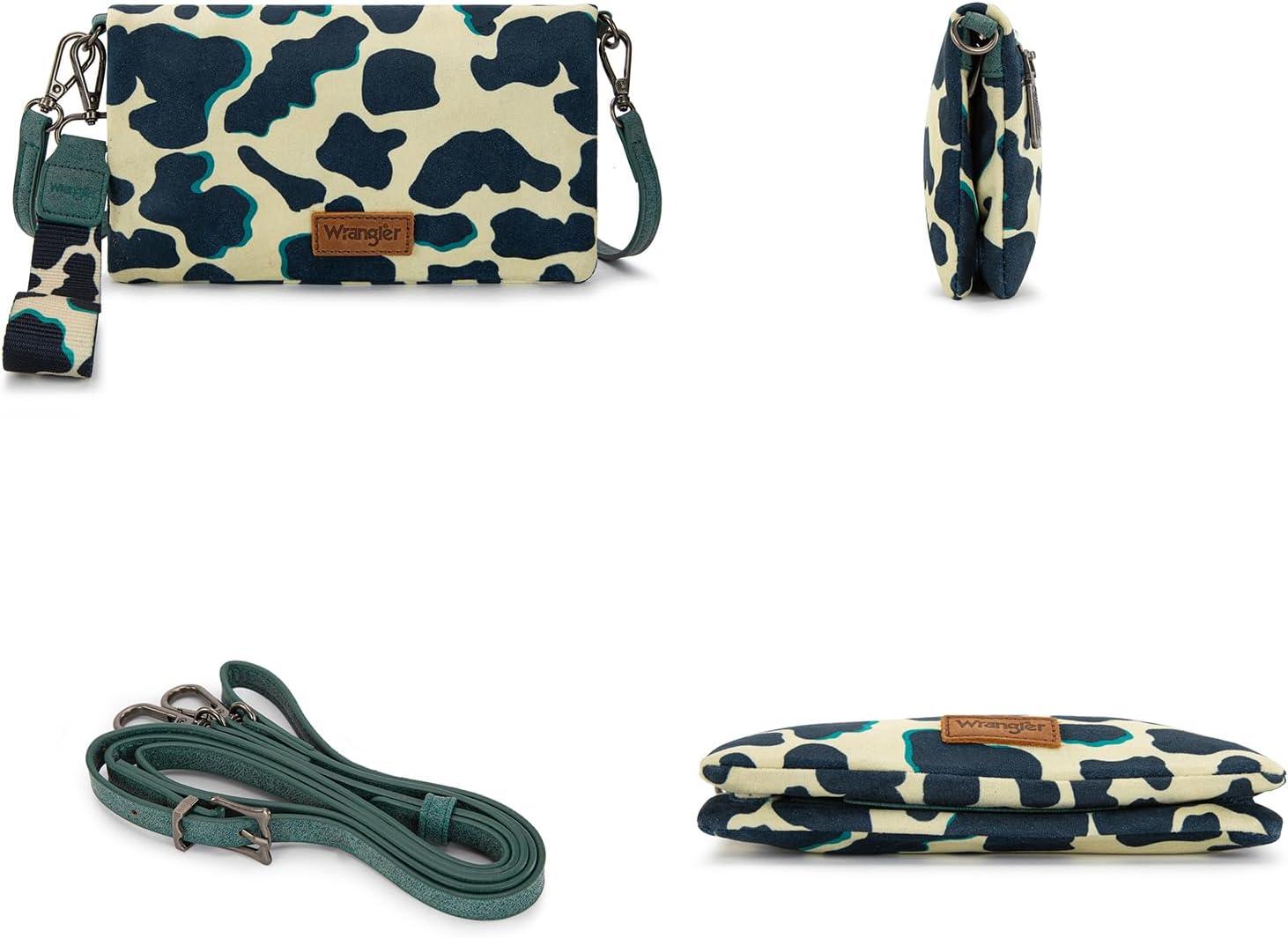 X Wrangler Wristlet Wallets for Women Bifold Cow Print Wallets Large Capacity Western Wallet with Crossbody Strap(Turquoise)