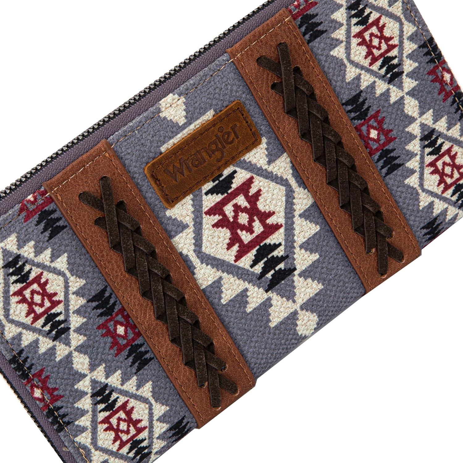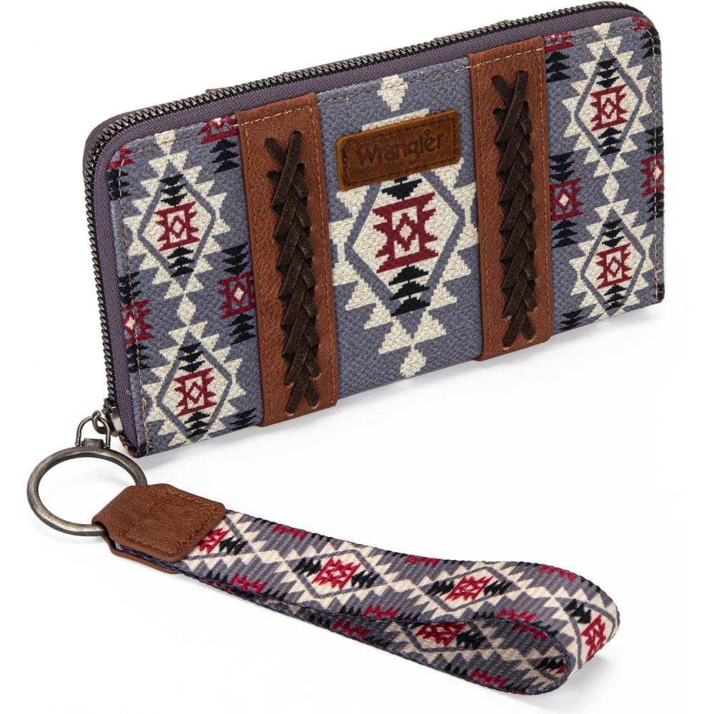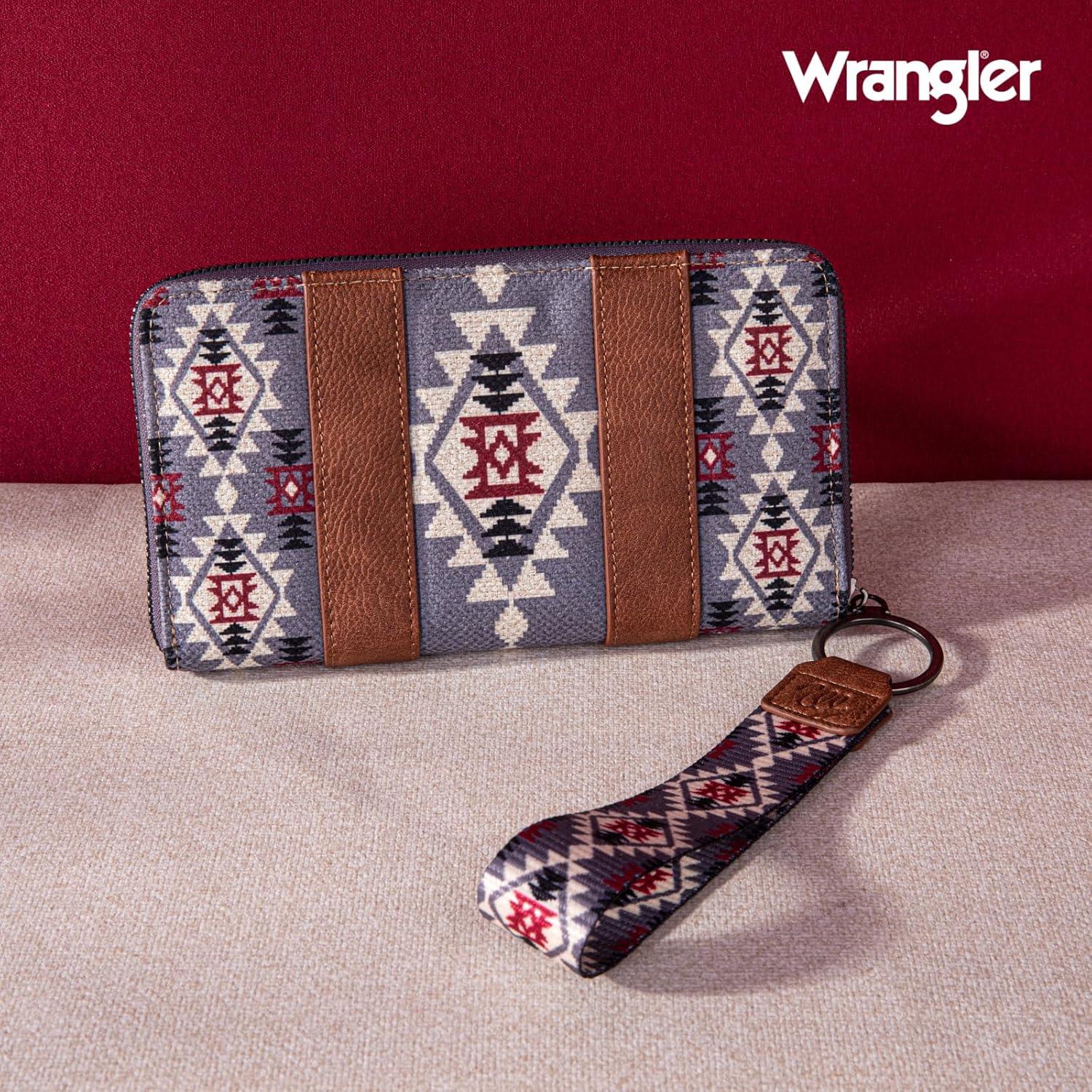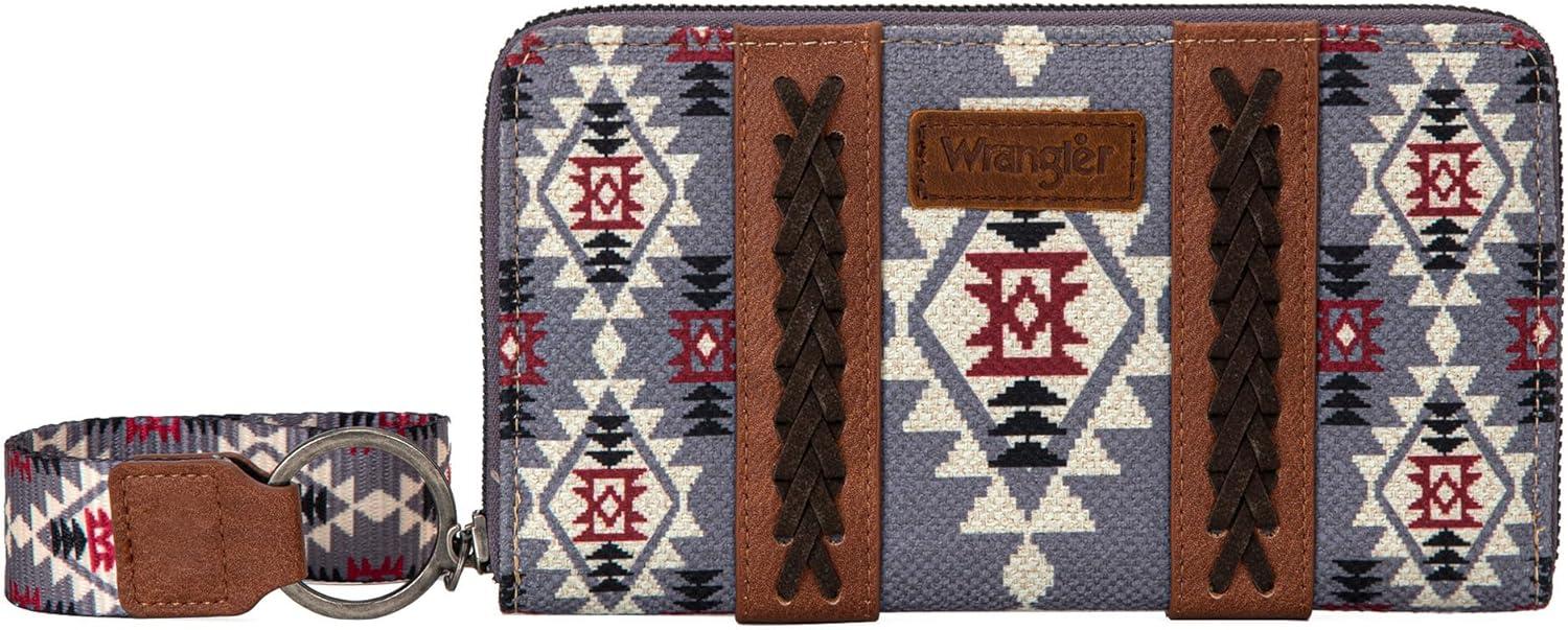 X Wrangler Wristlet Western Wallet Boho Aztec Credit Card Holder for Women(2023 Black and Grey)