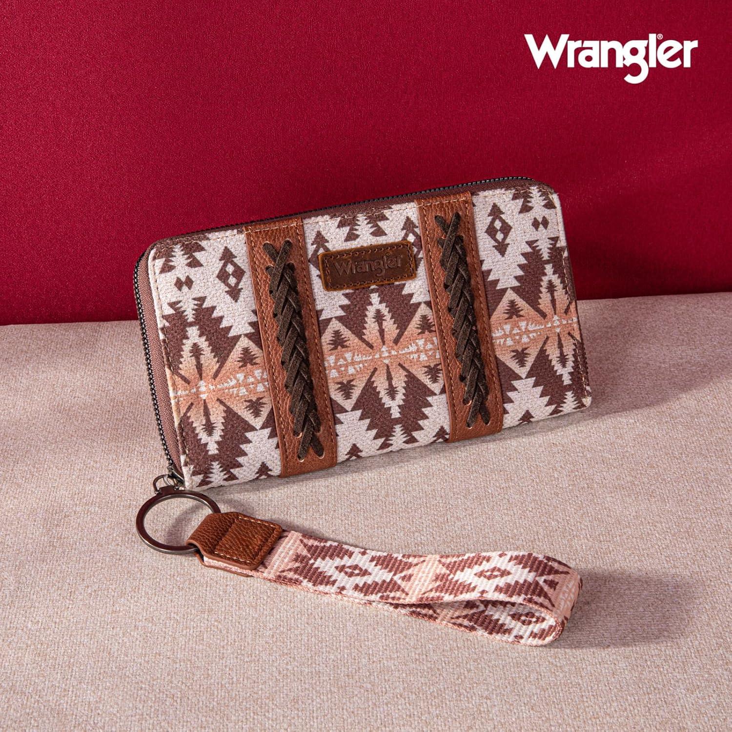 X Wrangler Wristlet Western Wallet Boho Aztec Credit Card Holder for Women(2203 Light Coffee)