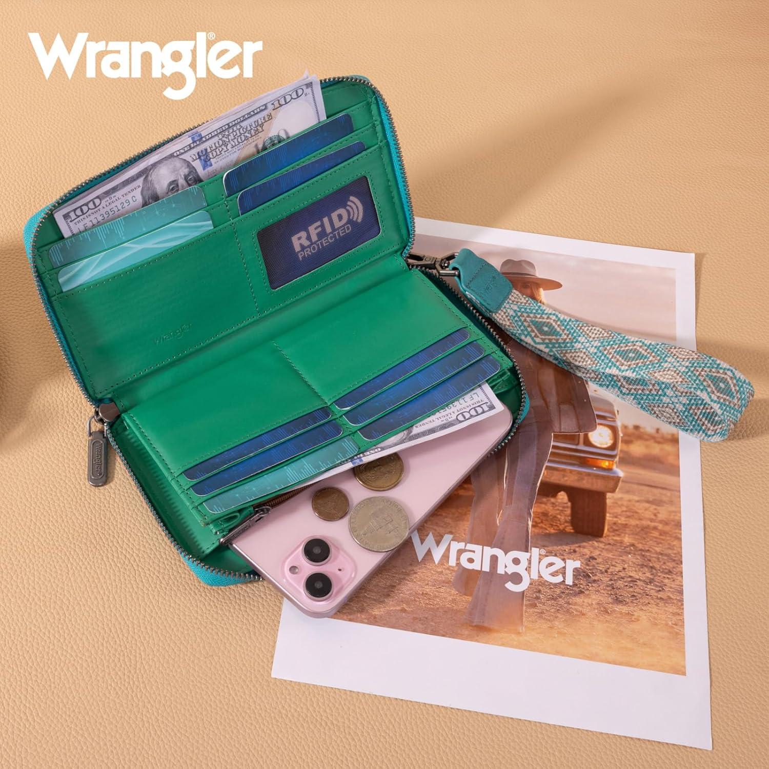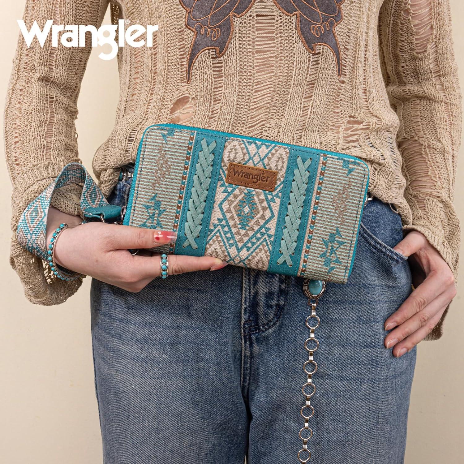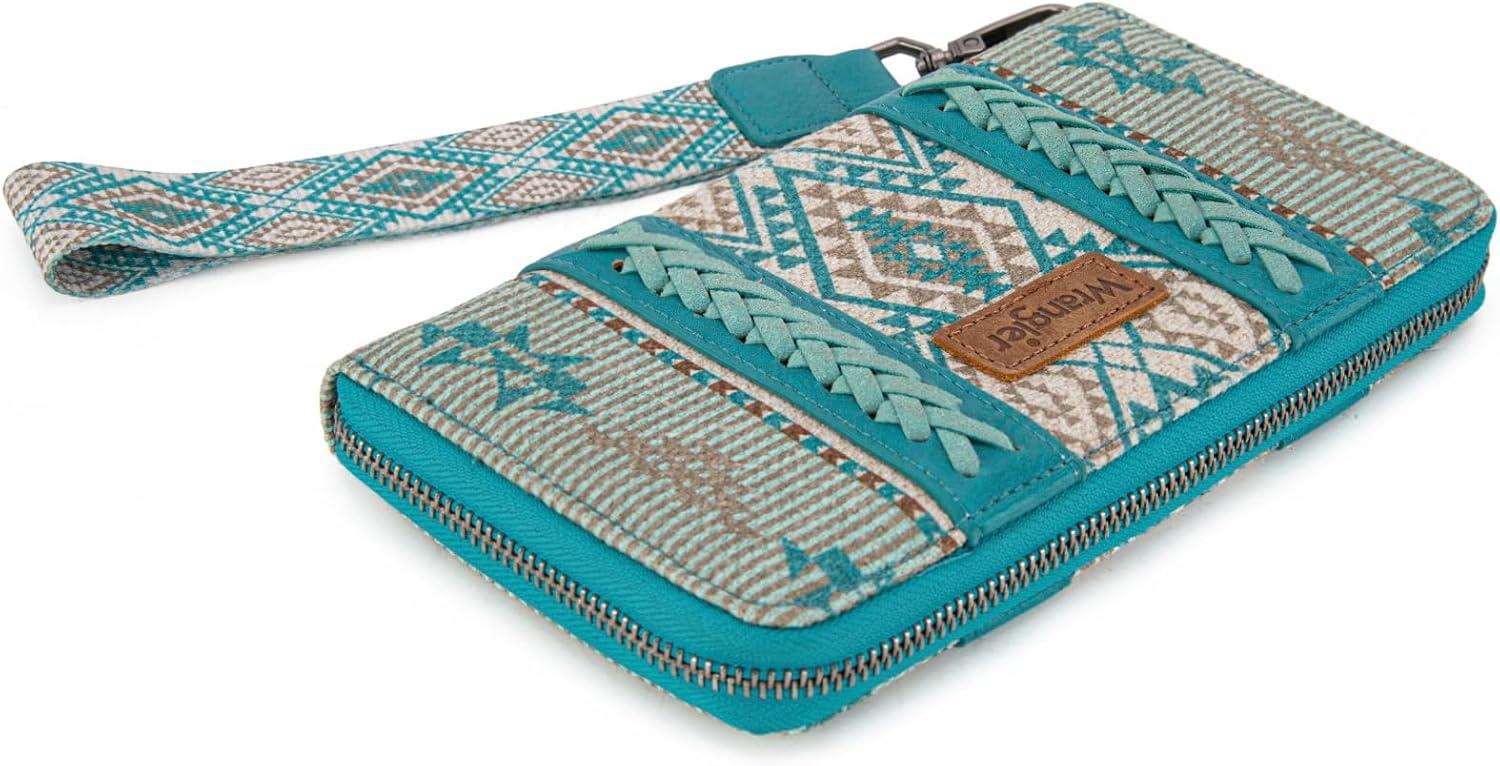 X Wrangler Wristlet Western Wallet Boho Aztec Credit Card Holder for Women(Aztec Tuiquoise)